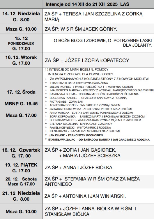 - W środę (17. XII.) Msza święta z nowenną do MBNP o godz. 16 45.