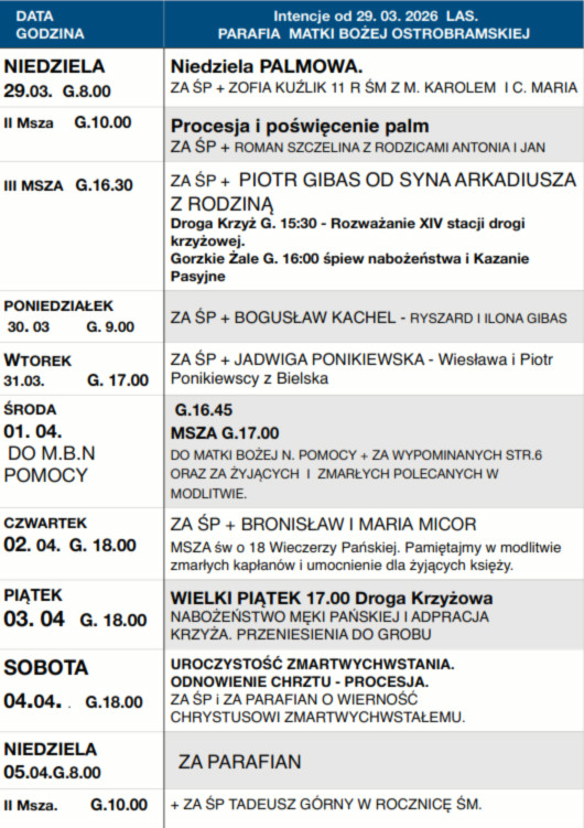 OGŁOSZENIA – NIEDZIELA PALMOWA 29.III.2026